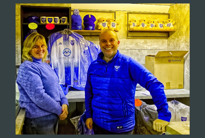 Check out the wide range of club merchandise that Donna and Paul Miles have on sale.
