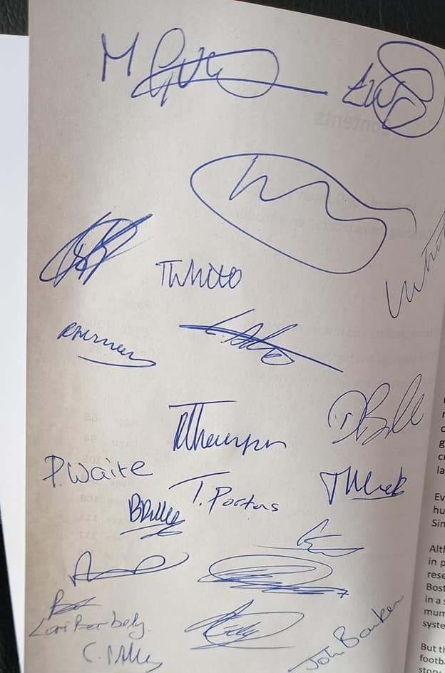 He got a copy of our new book To Be A Poacher signed by the author and players – and the signed book will be one of around 60 exciting prizes up for grabs in the raffle.
