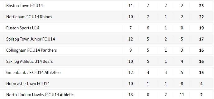 The 3 points moved them to the top of the Mid-Lincs Under 14A League table.