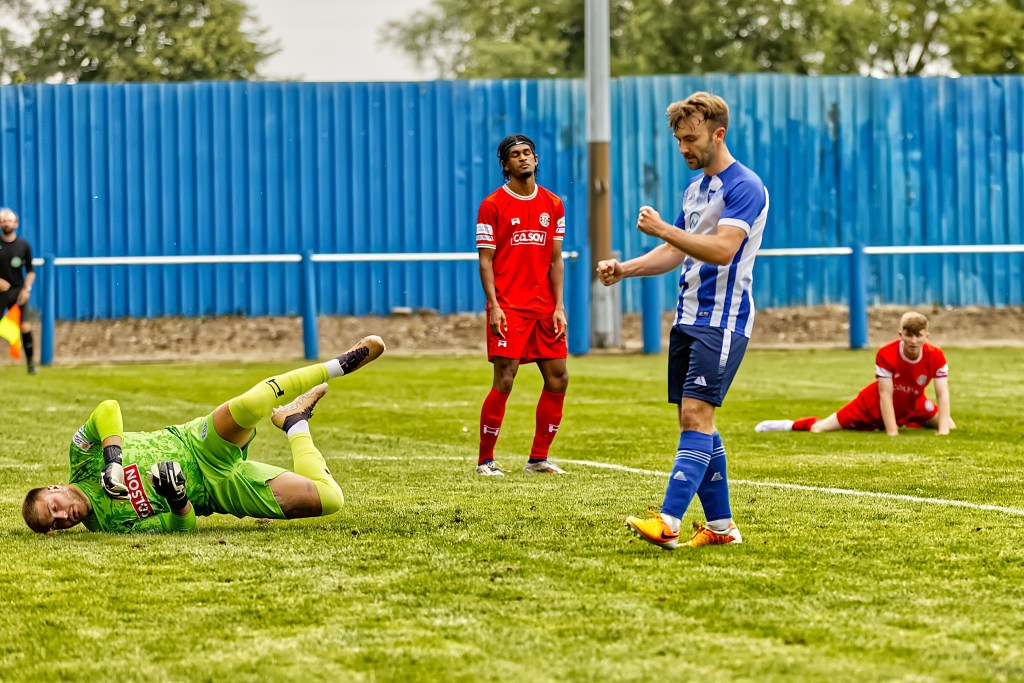 And the home fans at the Mortgages For You Stadium were silenced in first half stoppage time when Heanor’s record goalscorer Jamie Sleigh rounded Travis Portas to put them 2-1 ahead.